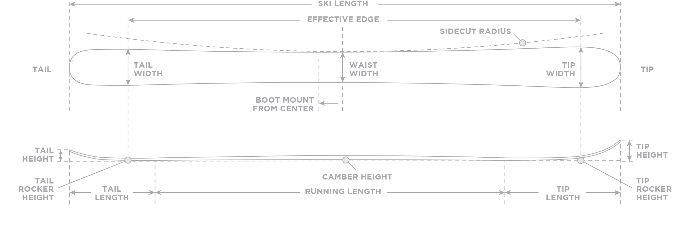 | Sidecut Radius | 15.8m | 16m | 16.9m | 18m | 19.1m |