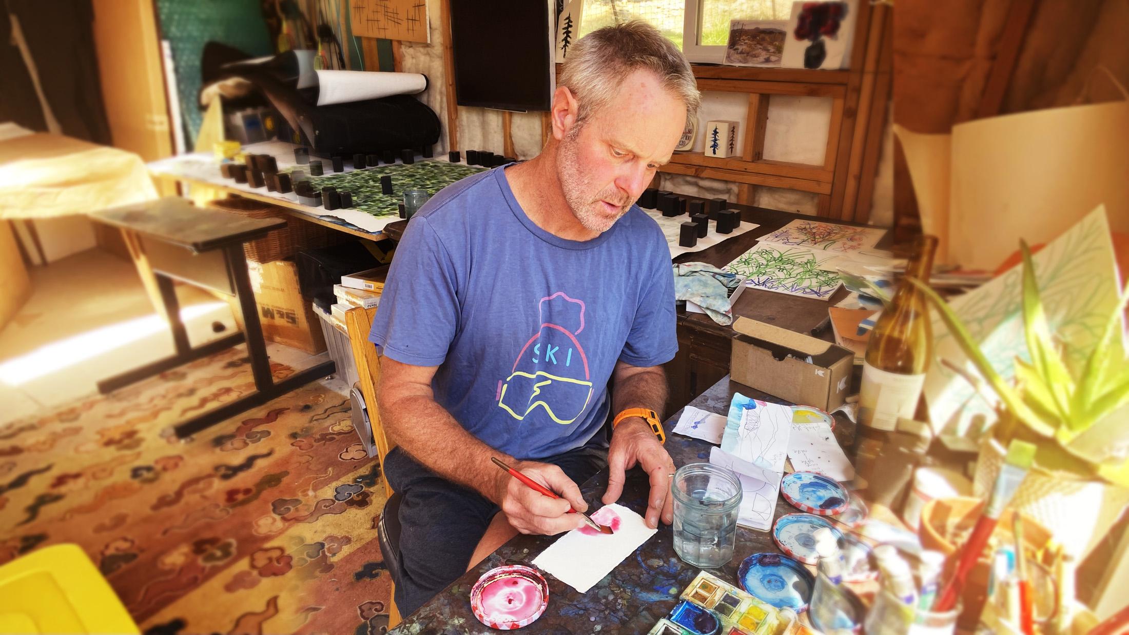In addition to being a ripping skier from Lake Tahoe, Chris Crossen is a wicked watercolor painter. He focuses on abstract landscapes involving tons of layering which is what really drew me to his work the first time we collaborated on a ski.