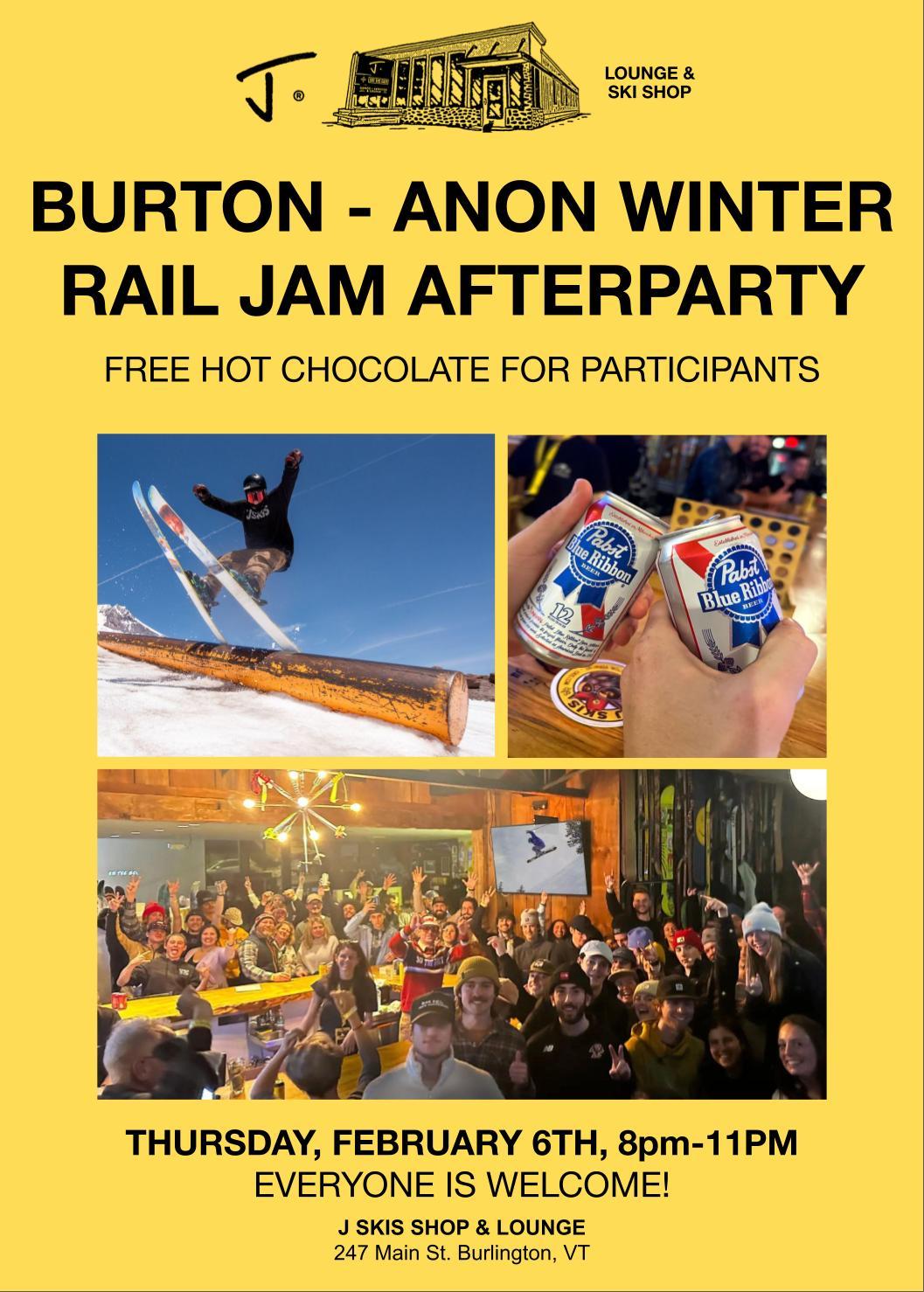 Our space is your place! We created this one-of-a-kind spot to give back to to the ski, snowboard, outdoor, and local communities to use it as their own and help keep the stoke alive! We look forward to hosting your private or public parties, fundraisers, pop-ups, classes, corporate events, movie premiers and more here. Scroll down to see upcoming events, and talk to us about hosting your event or party here at J skis Burlington.