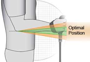 1) Stand up straight wearing shoes and put your elbow in a 90* position